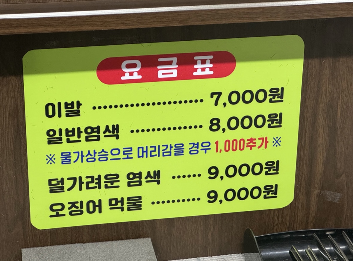 - 이발 7,000원