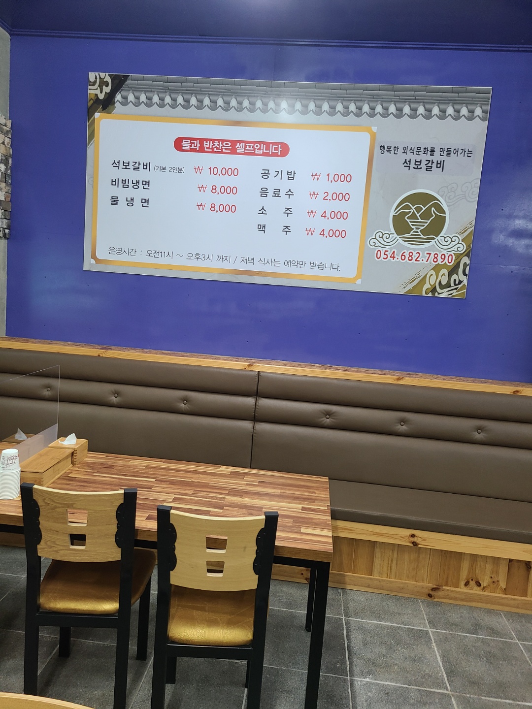 한스루검마산 가는길에 석보갈비가 있어서 방문했습니다. 우선 사장님께서 정말 친절하시고 석보갈비 저거 진짜 맛있습니다!! 고기가 가격도 착한데 양념이 진짜 대박입니다. 냉면에 고기 하나 올려서 먹으면 금상첨화에요! 밑반찬도 직접 재배해서 만드신다고 하네요 3시까지 하는 이유는 사장님께서 취미로 한다고 합니다 그래서 오후에는 경로당 놀러가야한데요!