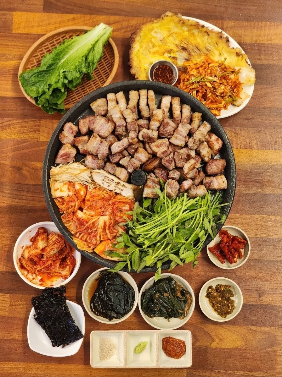 너무 맛있습니다. 조금 많이 먹는 두명 도삼한판 시켰어요!!! 평상시에는 삼겹살을 좋아하는 저였지만 여긴 목살..목살이 메인입니다. 목살이 더 쫄깃해요!!!!! 추천해주신 방법으로도 맛나게 먹고 배추전 결대로 찢어서 목살에 오징어무침회 안에 넣고 한입에 넣어먹으면 눈에서 빛이나요..배추전 2번 추가했습니다 더하고 싶었는데 남편이 말림🥲 목살이 너무 맛있어서 추가했고 진또배기술밥은 얼큰순대국밥안에 밥반그릇 버전이라 보심될거같습니다. 맛은 ㄹㅇ진또배기입니다. 단 공기밥 하나 추가해서 그대로 말아드시면 더 더 욱 찐또배기로 먹으실수 있을것임 🫶 마무리로는 불고기와 씻은지냉면으로 입가심 마무리 땡겼습니다. 직원분들도 친절하시고 또 올것임. 넘넘 맛있어요 흑흑...🩷