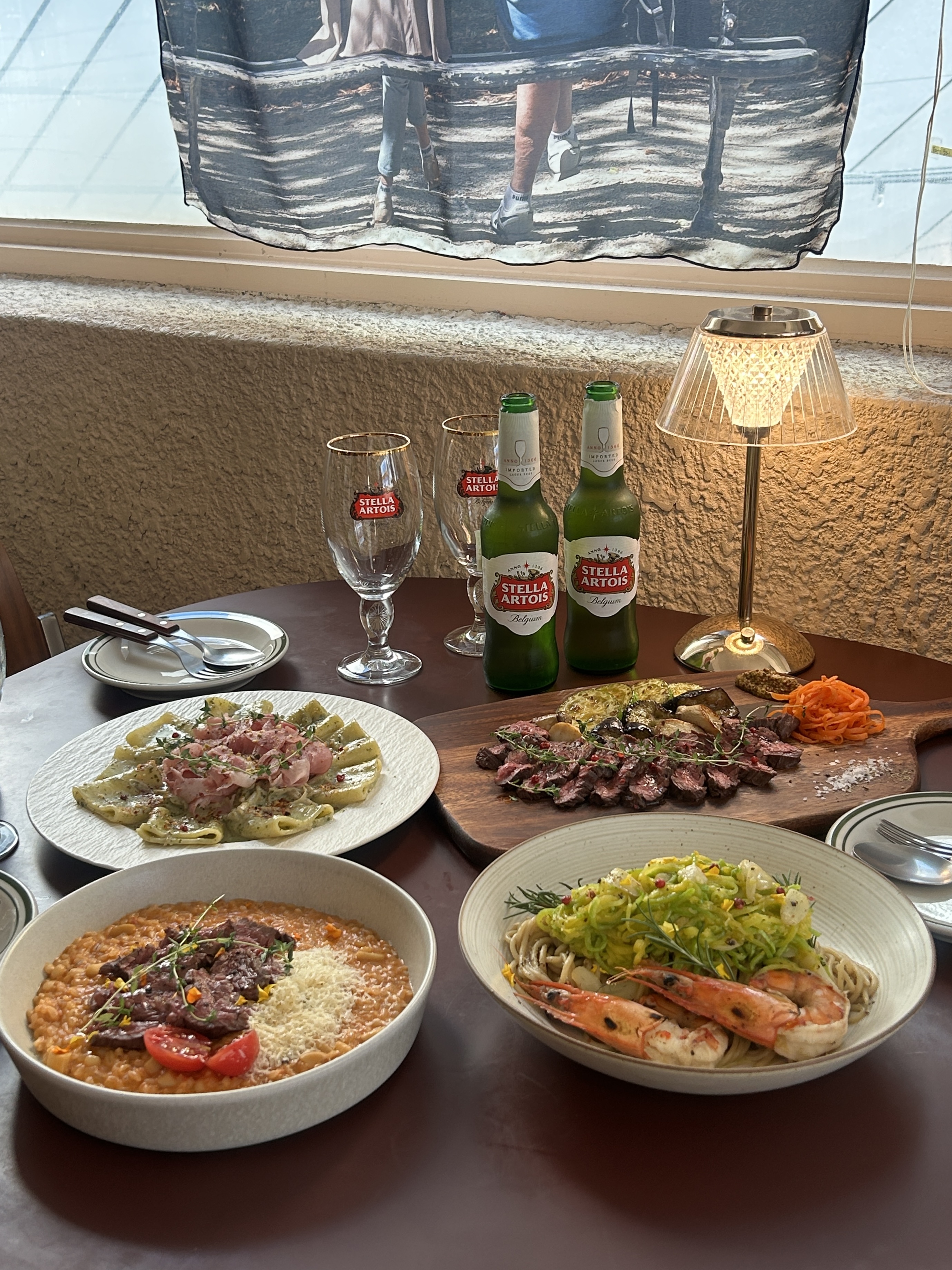 남자친구랑 데이트로 왔는데 일단 분위기가 너무 만족스럽구요, 위치도 너무 좋았어요 메뉴는 애호박 파스타랑 스테이크투움바 리조또 시켰는데, 애호박 파스타는 끝까지 물림 없이 먹을 수 있는 깔끔한 맛이었고, 투움바는 크리미해서 두 메뉴 조합이 너무 좋았네요! 맛있게 기분좋게 식사하고 갑니다😆