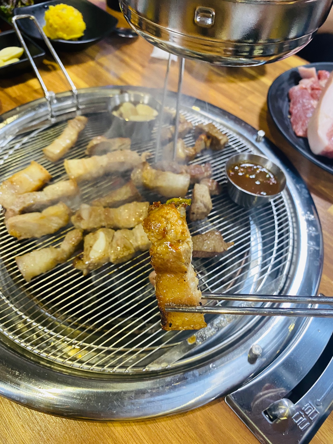 Jesusholic삼겹살을 멜젓에 찍어먹으니 맛있네요. 아쉬운건 양구사랑상품권 큐알도 비치가 안되있고 지역상품권 결재를 주인이 잘 모르시네요~