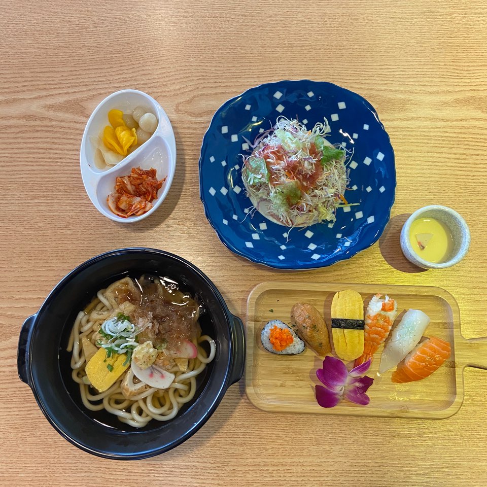 - 점심특선-뚝배기우동+초밥6p 9,000원