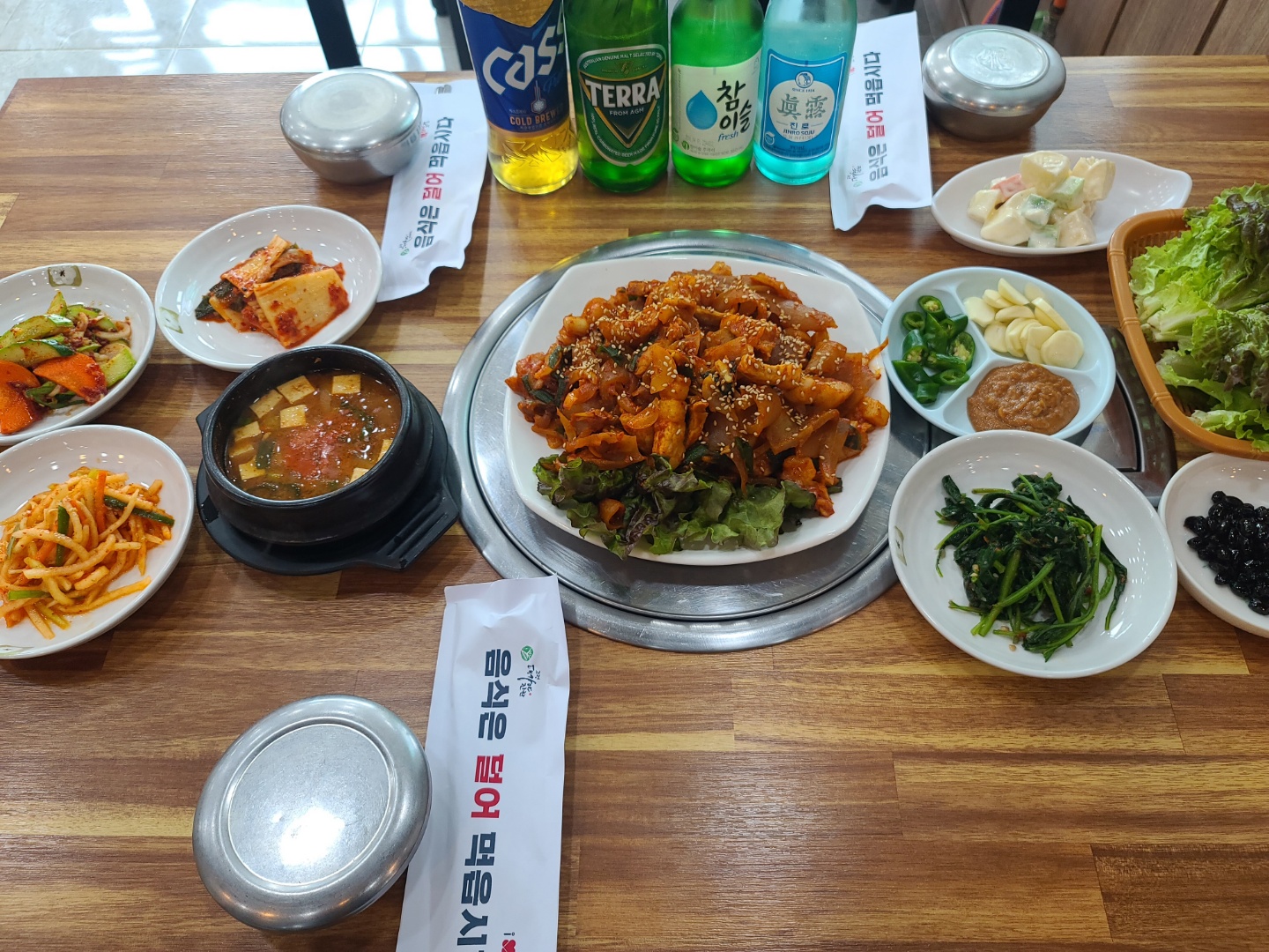 매우 맛있게 먹고 갑니다. 일단, 질 좋은 고기가 주는 만족감은 훌륭했습니다. 기본찬들에서 조미료 향보다는 가정에서 어머니가 해주시는 반찬느낌이 났습니다. 일반적으로 기본찬에는 손이 잘 가지 않는데 기본찬에서도 정성과 어머니의 손맛이 느껴져서 많이 먹었습니다. 비빔국수와 삼겹살을 같이 먹는것을 추천드립니다. 비빔국수가 시판되는 맛과 다르고 가정식 비빔국수 맛이 납니다. 넘쳐나는 공장맛, 조미료 맛으로 승부를 보는 식당들과 다르게, 가정에서 정성들여 만든 반찬들과 삼겹살을 구워먹고 가는것 같아서 매우 만족 했습니다. 맛있고 알찬 구성에 흡족함을 느끼고 갑니다. 매우 만족합니다.