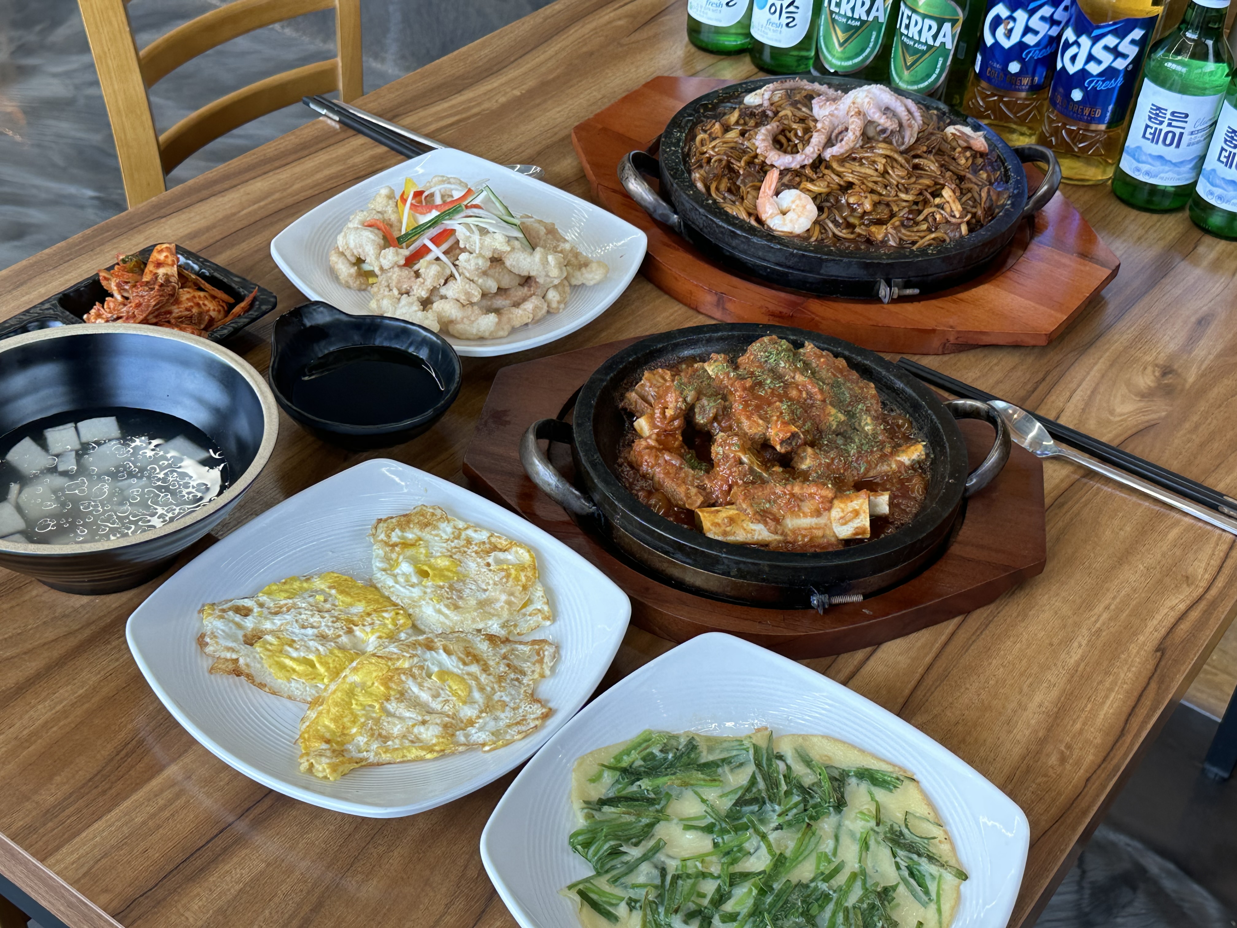 연극소녀우연히 방문했는데 너무 맛있네요.!!!! 계란후라이랑 김치전은 서비스 기본으로 나오는 물김치는 너무 맛있어서 몇번이고 리필했는지 몰라요 ㅎㅎㅎㅎ 탕수육은 레몬즙을 가득넣어 간장 안찍어 먹어도 상큼합니다 하이라이트 돌짜장은 지글지글한 소리와 함께 새우도 낙지도 통통 하고 해산물이 가득한 짜장이에요 불향가득 짜장이라 아이들도 어른들도 다 잘 먹었습니다.