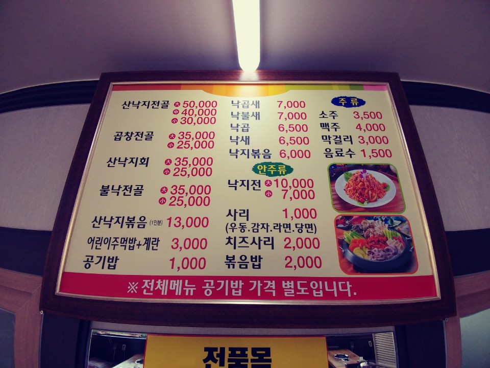- 산낙지전골대중) 50,000원