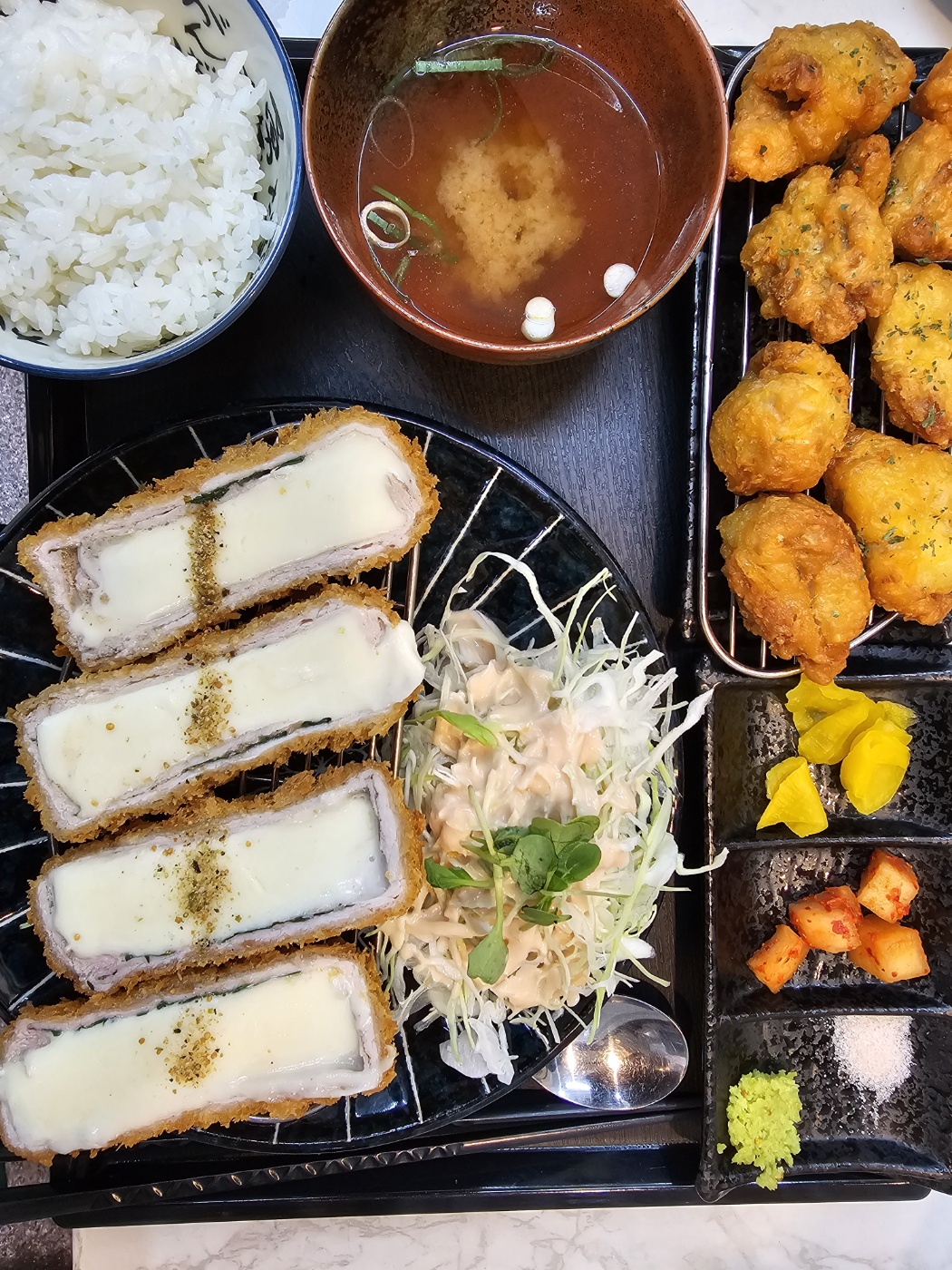 어디든맛집go필프레디[신창시장 인근, 가성비와 정성이 가득한 제주 흑돼지 카츠 전문점 📍] 가족들과 함께 방문한 이곳은 제주 청정지역 흑돼지만을 사용하는 수제 돈가츠 전문점이다. 🐖 생안심돈까스는 미오글로빈 성분 덕분에 선분홍빛 육즙이 가득하며, 고기의 두께가 상당해 씹는 맛이 일품이다. 치즈까스 역시 넘쳐흐를 듯한 치즈 양과 고소한 풍미가 돋보인다. 🧀 특히 깨봉을 이용해 직접 참깨를 갈아 소스를 제조하는 방식은 식사 전 소소한 재미와 함께 고소함을 극대화해준다. 🥣 1.1~1.2만 원대의 가격 대비 양이 매우 푸짐해 온 가족이 배부르게 즐길 수 있는 '혜자' 맛집임에 틀림없다. 👍 * 맛: 육질이 부드럽고 담백함. 다만, 튀김옷에 기름이 다소 배어 있어 바삭한 식감이 덜한 점은 살짝 아쉬움. #신창동맛집 #제주흑돼지