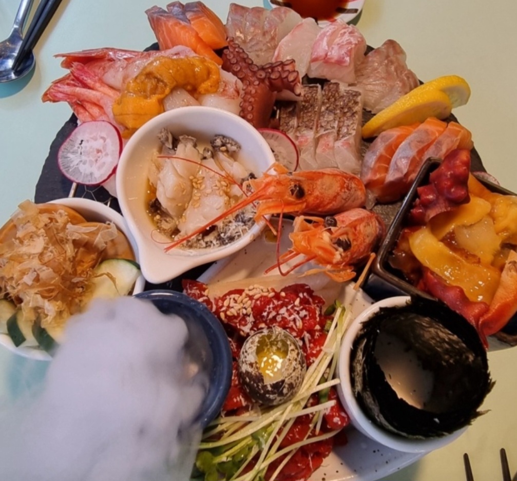 다이렉트결혼준비를 소개하면서 다이렉트결혼준비로부터 웨딩소품(부케, 폐백 등) 등을 구입할 수 있는 포인트를 받을 수 있었음 회를 너무너무 좋아해서 인스타에 뜨자마자 예약하고 가봤습니다! 너무 먹음직스러워보여서 안갈 수가 없었어요~ 가족들과 다같이 데이트했는데 여러음식 시킬수 있어서 더 좋고 가족들과 함께해서 더더 좋았어요! 근데 아쉬운건 음식이 넘 늦게 나왔어용 ㅠㅠ 기다리고 기다리다 나온 까르보나라 일단 이걸로 굶주린 배를 달래고 있었어요 이것도 진짜 맛있었고 조카들이 거의 다먹었어요 ㅎㅎ 빵추가도 되서 아이들이 좋아했어요!! 그리고 드디어 나온 극락 !!!메뉴 이름이 극락이예요!! 단새우 ,우니, 관자,참치, 연어알 정말 극락이였어요 ㅠㅠ 넘넘 신선하고 맛있었습니다 하나하나 먹는게 아까울정도!! 술이 술술 들어가더라구요 ~ 달콤하고 신선하고 정말 극락이였습니다 ! 단새우는 나중에 머리만 모아서 버터로 구워주세요! 이것도 진짜 대충 나온게 아니라 맛있게 요리처럼 나와서 대만족이였습니다 그리고 한시간에 걸쳐... 나온 모듬회 왜 안나오냐고 문의했더니 그후에 10분만에 나왔어요 첨에 극락,까르보나라,모듬회 같이 주문했는데 누락되었나봐요ㅠㅠ 근데 맛은 보장합니당 ㅋㅋㅋㅋ 진짜 거를게 없었어요 !! 저 보리된장도 육회도 장어도 다금바리 등등등등 진짜 늦게 나온것만 뺴면 최고였어요! 매일 사장님이 노량진에서 횟감을 공수해오시더라구요~ 그래서 그런지 진짜 신선하고 맛있어요 ! 맛은 인정 ! 이렇게 먹었는데 좀 허전하고 다른건 또 늦게 나올까봐 무섭고 ㅎㅎ 그래서 빨리 나온다고 늦을일없다하신 탕을 시켰습니다ㅋㅋㅋ 통오징어가 통째로 들어가 있는 얼큰한 탕입니다! 해산물신선도는 정말 좋구여 마지막 마무리하기 좋아써요!! 음식만 빨리나온다면 저기 있는거 다먹고 싶었어용 메뉴가 엄청 다양하더라구요~ 다음에 가면 극락은 무조건 주문하고 다른건 새로운 메뉴를 도전해볼래요~ 진짜 맛있는게 많았습니다!!