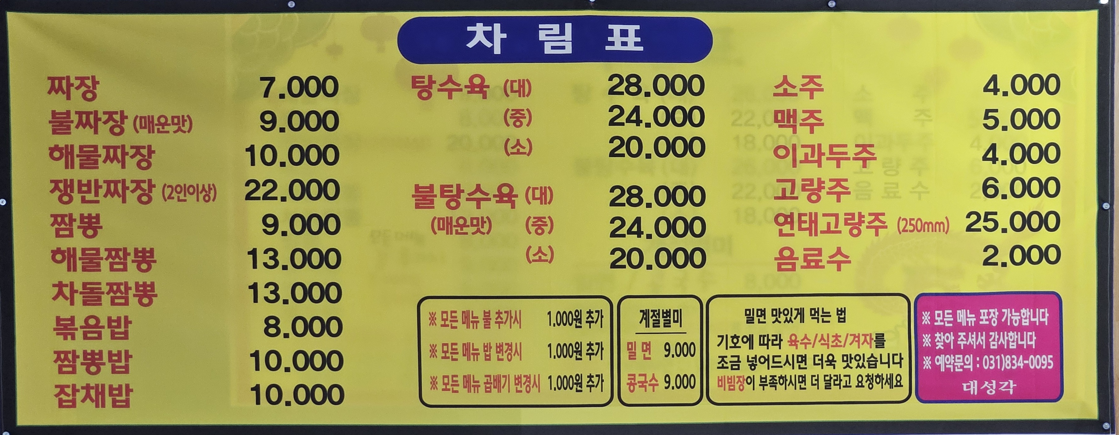 - 짜장 7,000원