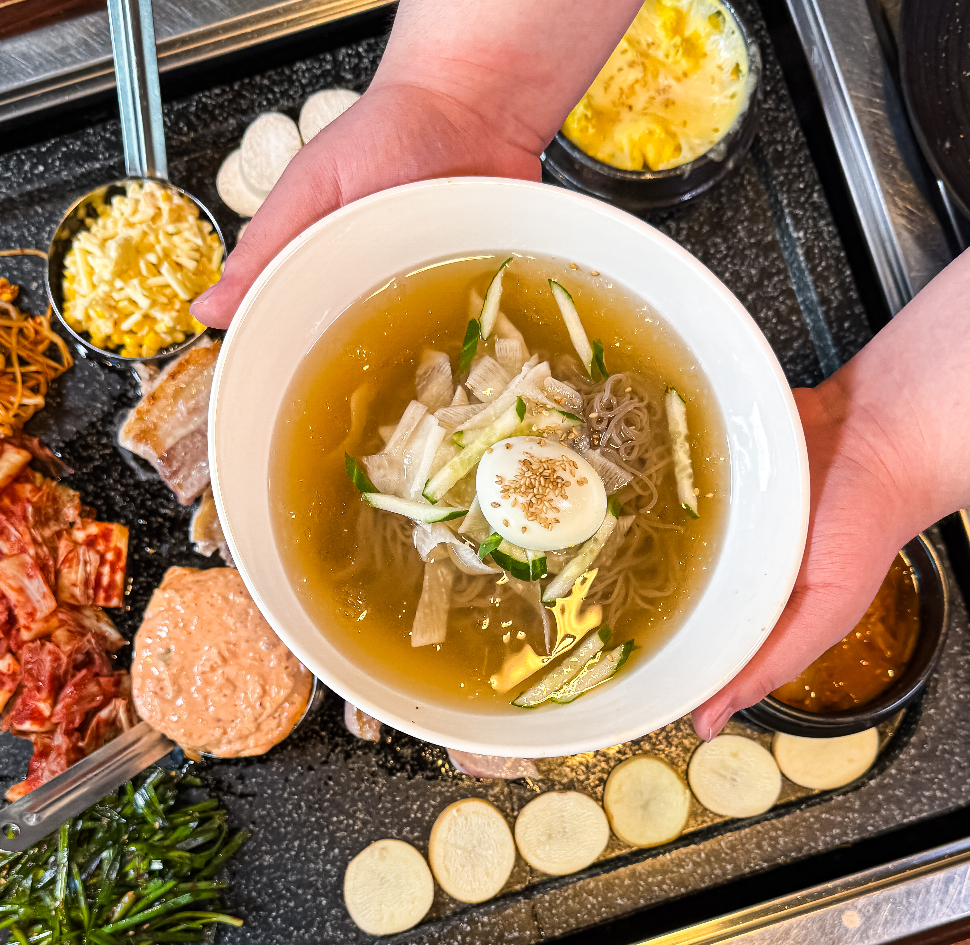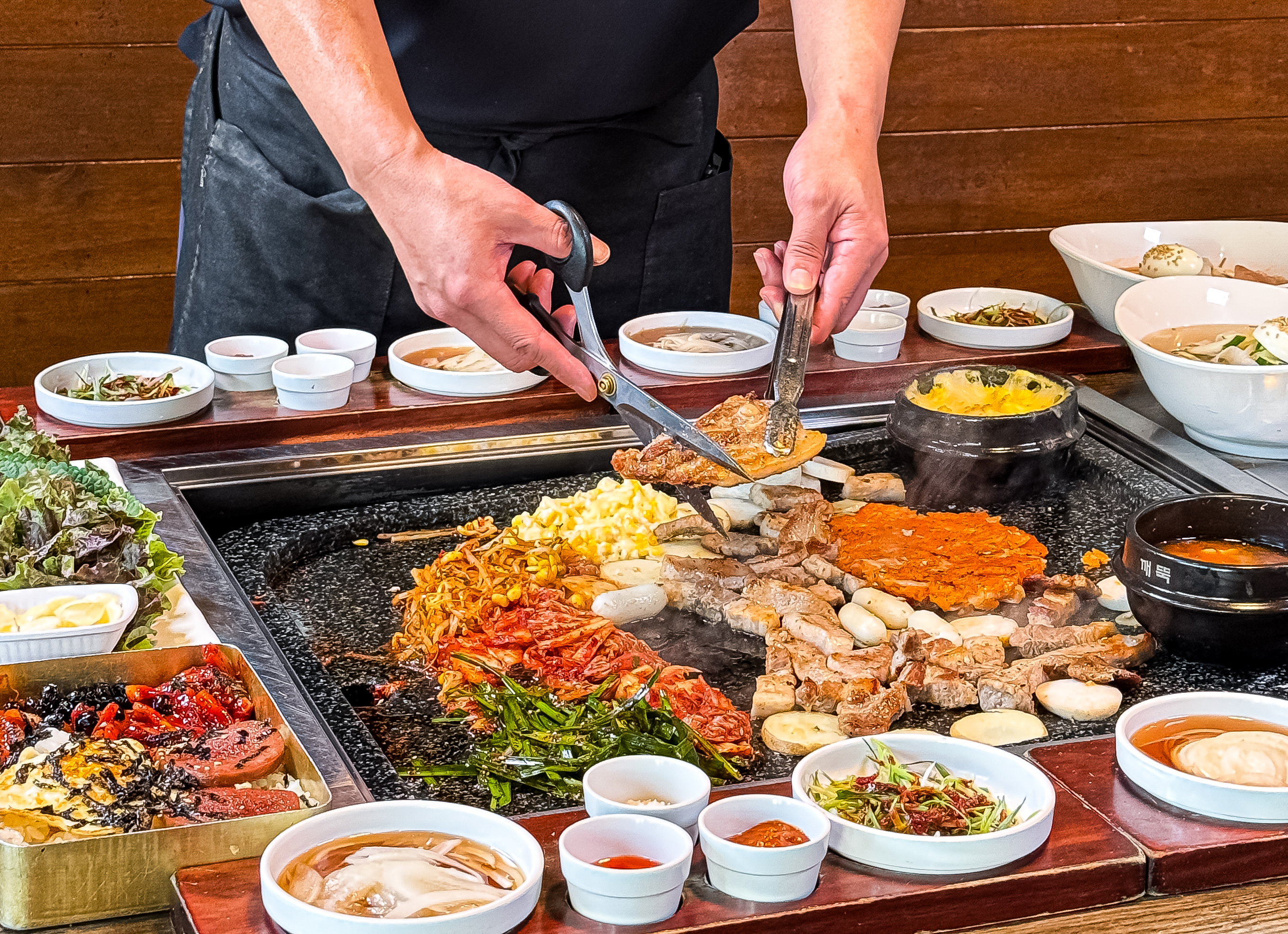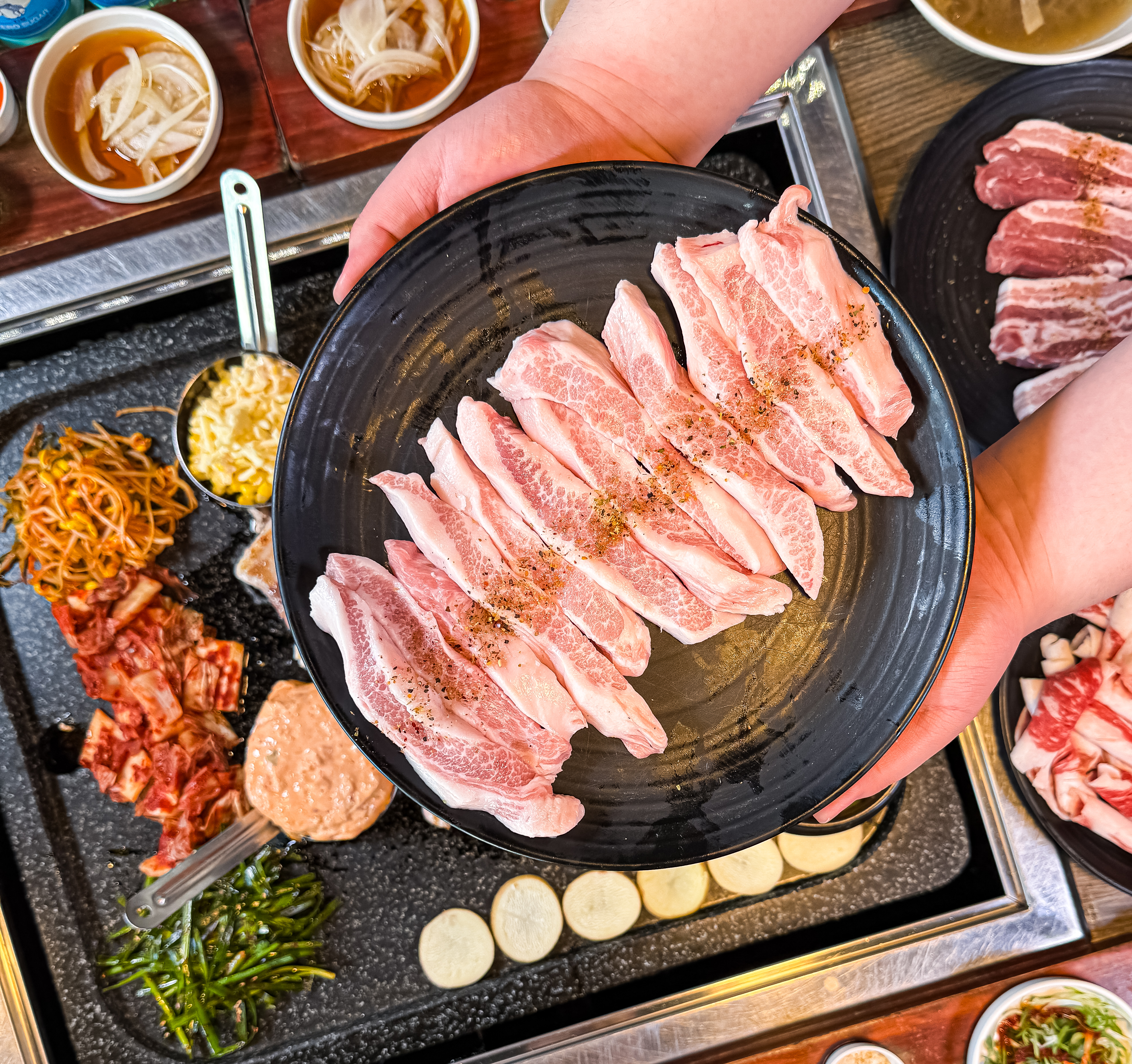 동인천역 바로 앞에있어서 남자친구랑 데이트하러 동인천 온 김에 방문했어요! 테이블 앉으면 차려주시는 기본 셋팅이 김치, 콩나물, 부추, 버섯, 치즈떡, 감자, 된장찌개까지 이렇게 많이 주셔도 되나요...!(감사합니다🙇🏻‍♀️) 주문 들어가면 고기 잘라주시는데... 믿음이 팍팍!!👍🏻 고기도 구워주시고 김치부침개와 콘치즈까지... 고기도 넘 맛있고 1차적으로 직접 구워주시니 먹기도 편했어요! 5시 방문했는데 시간 지날수록 가족단위, 커플들도 많이 찾으시는거보니 여기 맛집이네요! 동인천 방문하면 다시 올 집!🫶