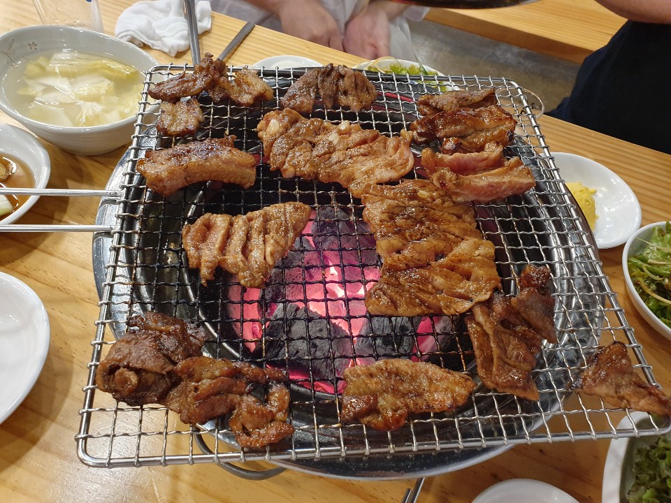 트루해피맛동산 서구청 근처 맛집이라서 벼르고 갔네요 주말점심 웨이팅 있어구요. 12시 20분쯤가서 15분정도 대기 했는데, 먹는동안에도 계속웨이팅있음. 직접 다 구워주어 편하고 달짝지근하게 맛있어서 사람들이 많나봐요. 개인적으로 목살+등갈비 12,000이 기본이 뼈삼보다 낫더라구요.~~
