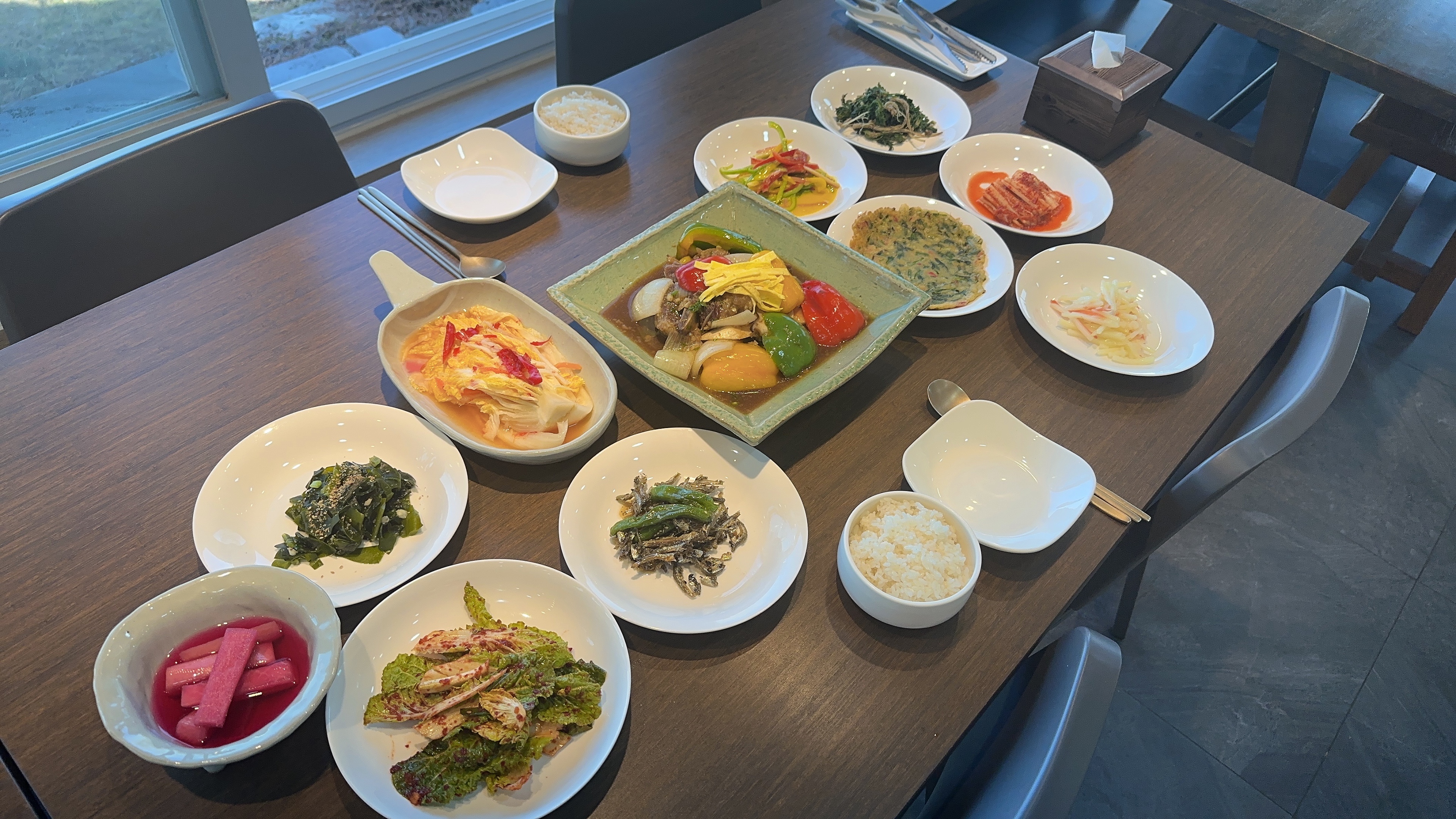 아줄라쿤갈비찜이 깔끔하게 맛있어요 푹 익어서 고기는 연하고 맛있고 기본 반찬들도 맛있게 깔끔해요 뷰도 좋고 바로 근처에는 연꽃테마파크가 있어서 식후에 산책을 즐기기에도 좋아요