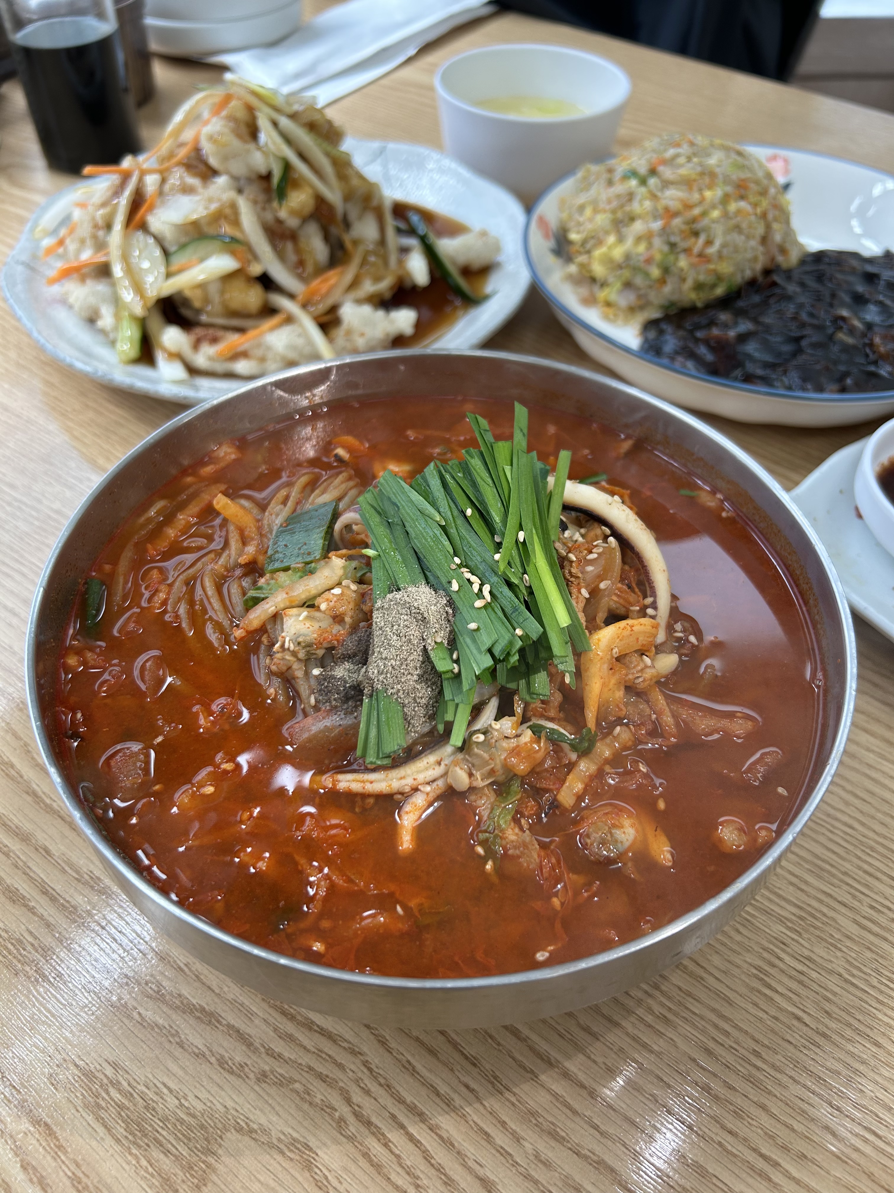 직장인김오복맵찔이도 먹을 수 있는 하얀짬뽕이 진짜 고소했고, 빨간국물 짬뽕밥은 얼큰한데 속은 안쓰리고, 불향도 나서 맛있게 먹고 옴 ! 톳면이라 해서 신경쓰였는데 이상하지 않았고 자가제면이라 면이 쫀쫀탱글한거 같음