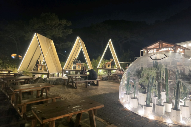 비오는 밤인데도 사람들이 많네요? 돌계단 미끄러워 조금 조심해야해요. 뷰 좋은 곳에서 야식으로 라면 맛있게 먹었어요.