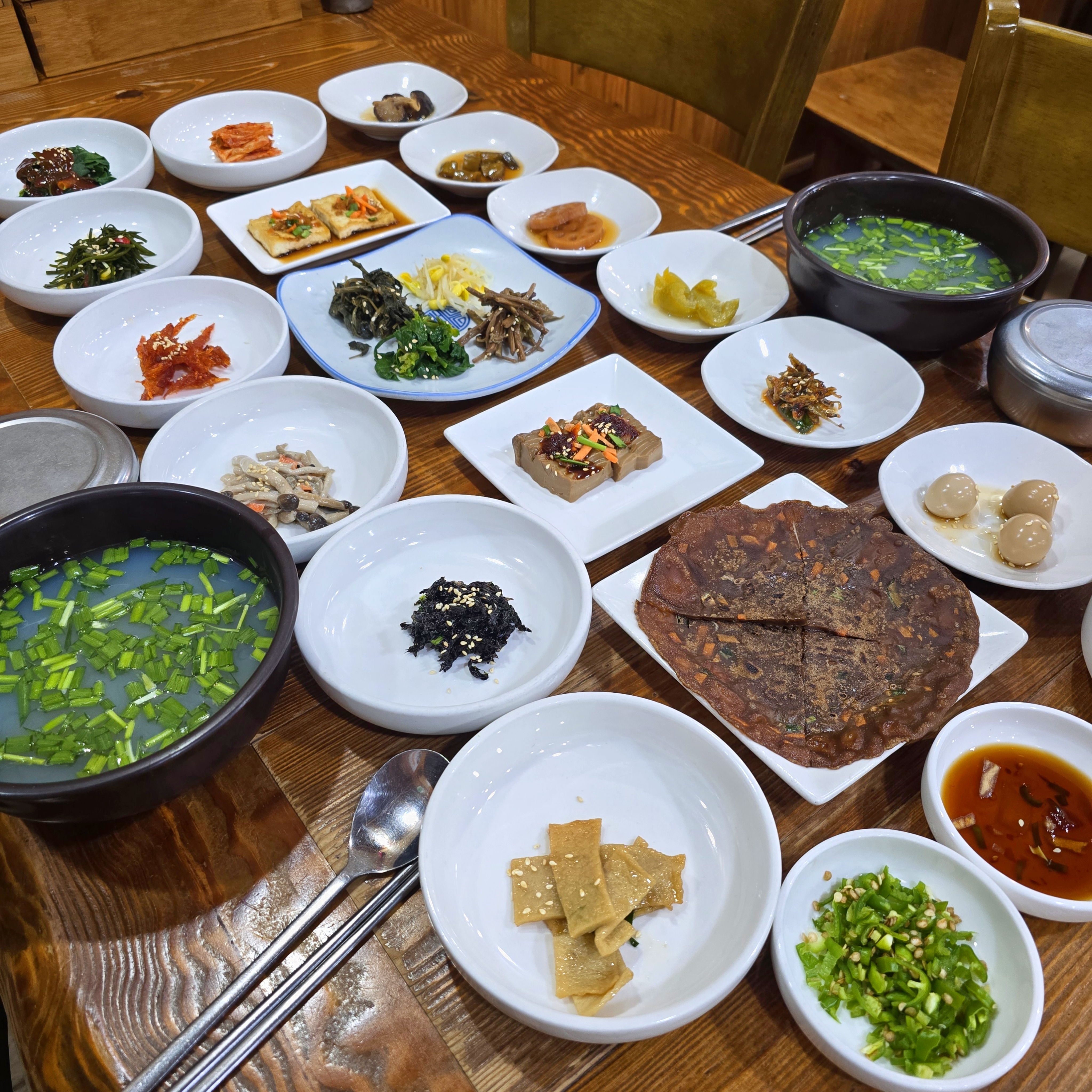 곰슐랭 33청운식당 더덕정식, 비빔밥 먹었어요!! 주변 이거저거 챙기느라 정신없어서 사진 겨우 찍엇어요- 더덕 정식 많이 드시는데 저는 산채비빔밥이👍 담에는 비빔밥에 더덕구이 조합이 더 좋을거 같아요! 반찬도 종류별로 많고, 친절하세요- 더덕구이 좀 먹고 돌판위에 나물 넣고 볶아 먹을 수 있어요. 밥 볶을 때 쓱 보시고 김가루랑 참기름 넣어주러 오세요. 반찬 부족하시면 말씀 하시라고 유쾌하게 말씀하시고 음식점 마다 분위기가 있는데 바쁜 와중에도 모두 친절하세요. 흰쌀밥은 안좋아 하는 편이라 밥은 기대 안했는데, 윤기도 반질 반질 밥도 맛있어요! 재방문 의사 있습니다!