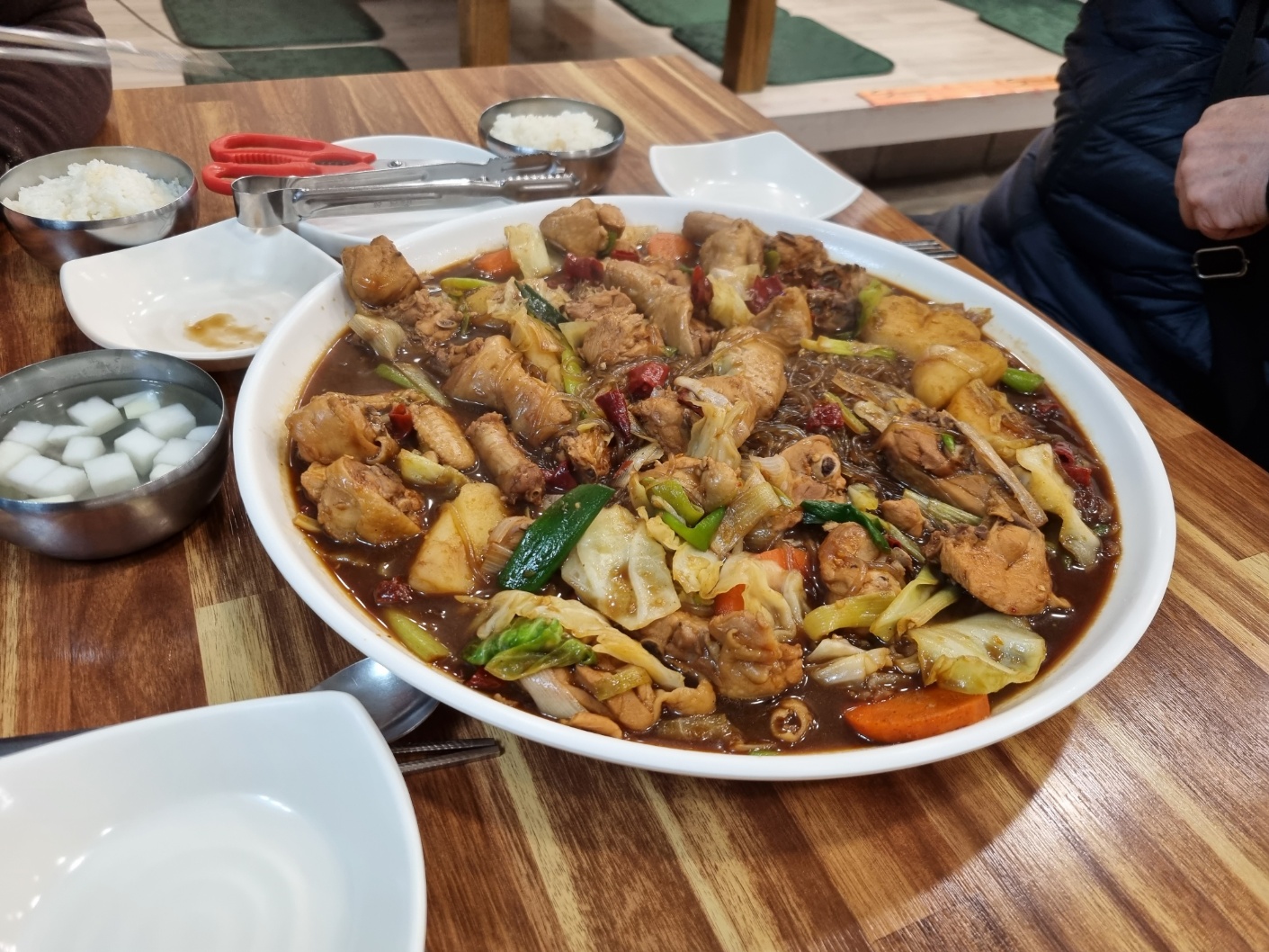 또미하카카오평이 좋아서 찾아갔는데 정말 괜찮았어요! 쪼림닭이라 한 20분 걸렸고 살짝 달콤한 양념에 안에 야채도 가득이고 떡도 생 가래떡인지 쫄깃하니 맛있었어요 닭은 조금 작은 사이즈인것 같고 당근은 좀 더 익었으면 좋았겠지만 그래도 만족하고 맛았게 먹은 집입니다