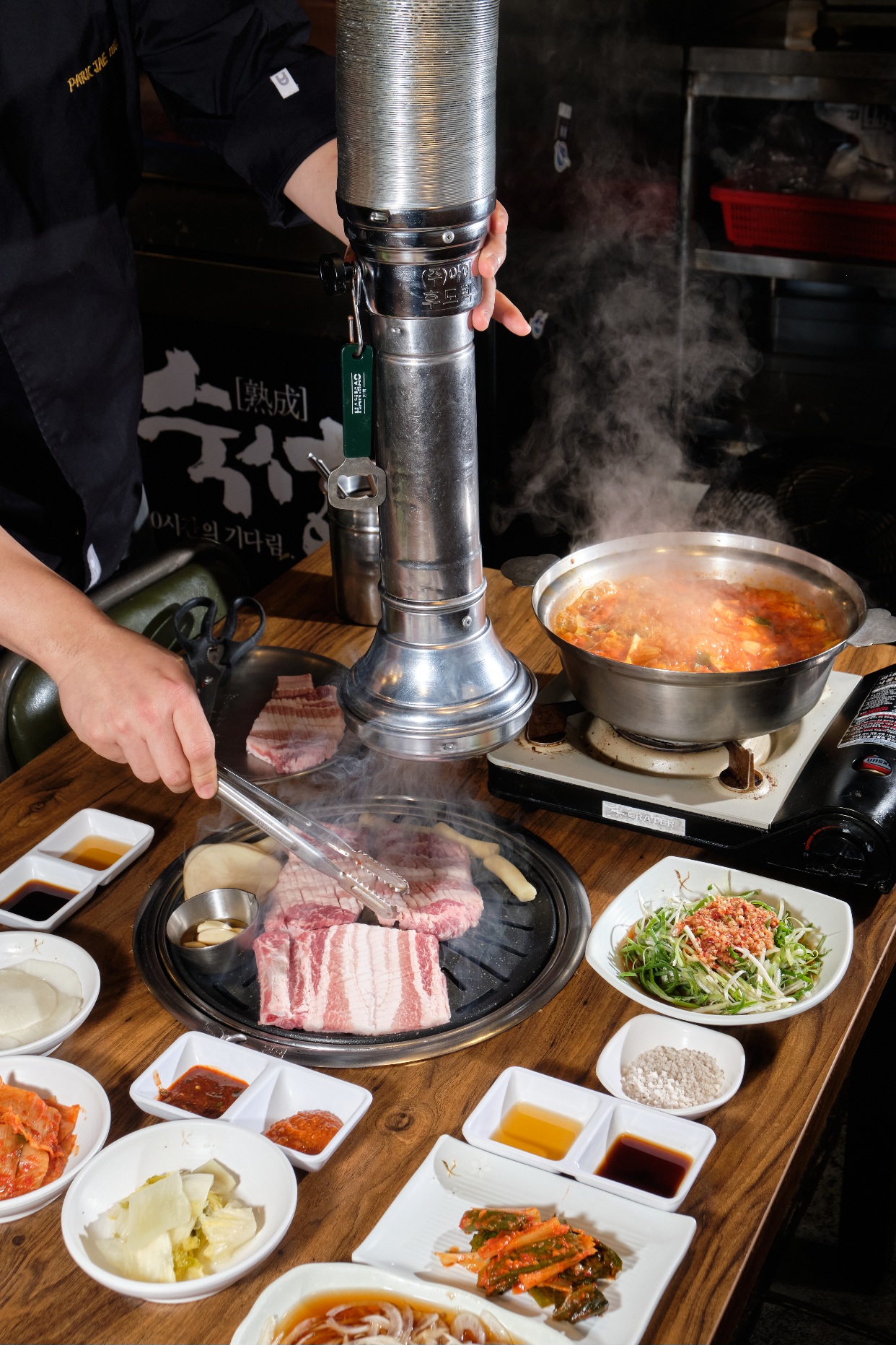 수제멍게동래 돼지갈비 맛집으로 유명하다고 방문했습니다. 주차는 가게앞 유료 주차장에 주차했고 가격은 30분에 2000원입니다. 생갈비.양념.갈매기살 시켰구요. 생갈비는 보통 얇게 포를 떠서 칼집내어주는 곳이 많은데. 이집은 두껍게 칼집 하나하나 정성스럽게 내주어 보통 갈비집보다 진한 생갈비 맛을 느낄수 있었습니다. 밑반찬은 추가는 셀프인데 맛은 그냥 고기집 반찬수준 입니다. 양념갈비와 갈매기살도 보통입니다. 김치찌개와 된장찌개 시켰는데 김치찌개 시켜드세요.라면사리와 육수가 무제한이라 많이 드시는분은 좋을것 같습니다. 김치찌개도 쏘쏘입니다. 그냥 보통 고기집이라 줄서서까지 먹을집은 아닌듯 합니다. 재방문의사 없습니다.