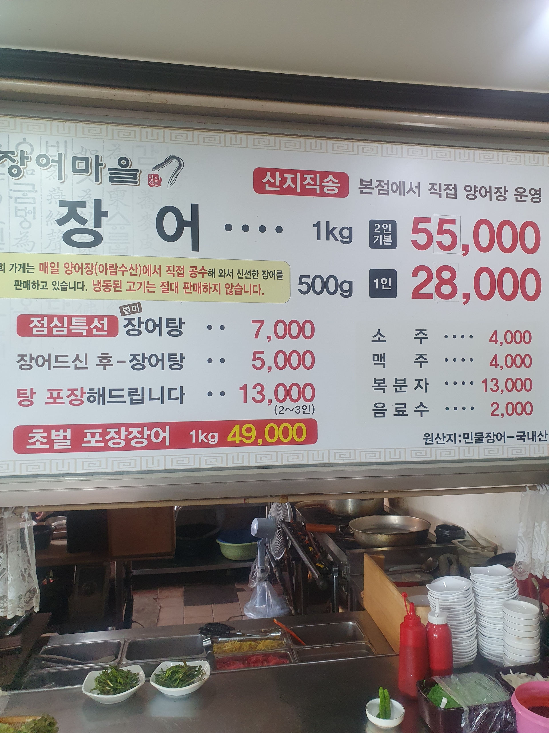 - 장어탕(포장 2~3인) 13,000원