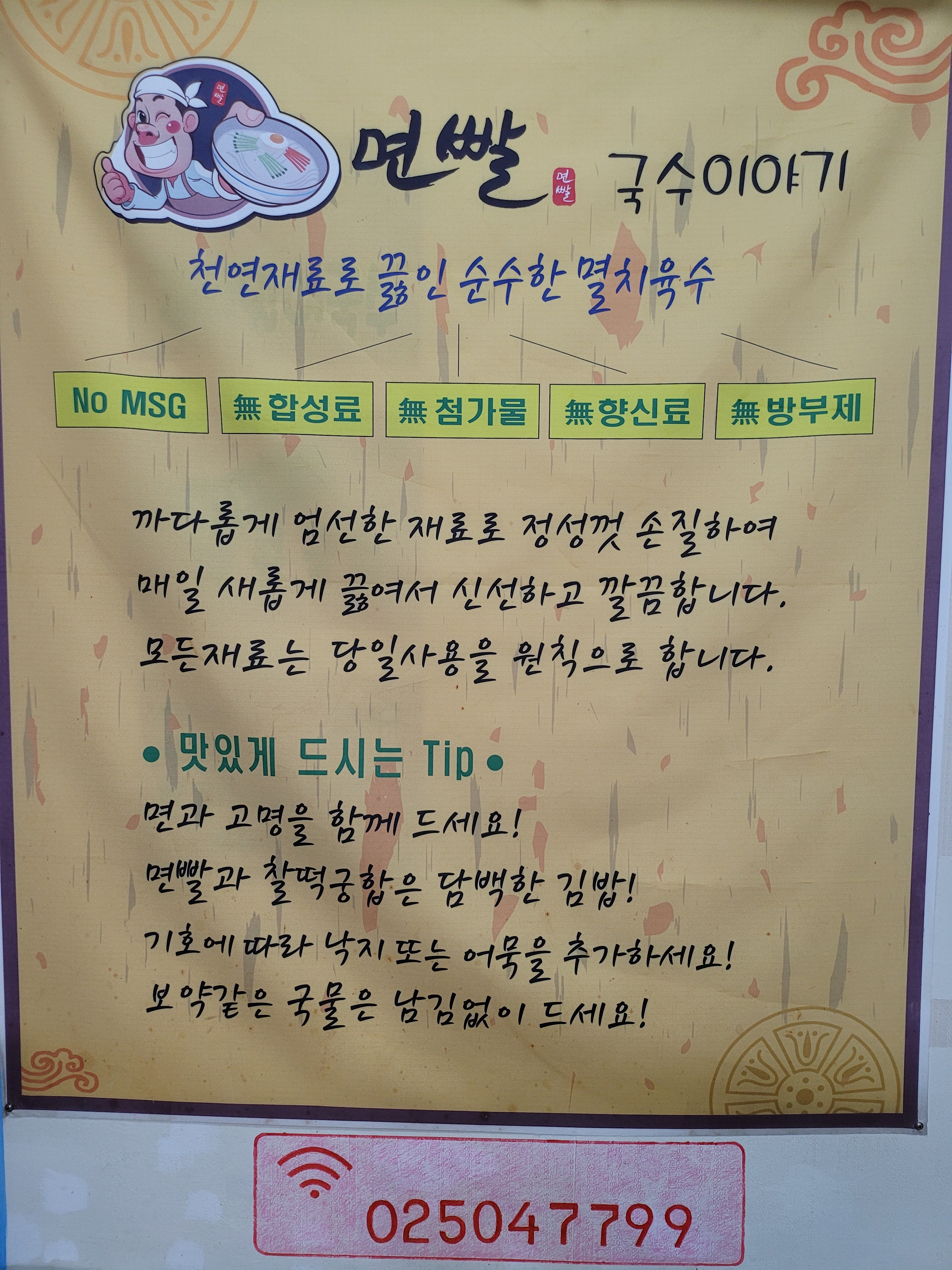 - 면빨멸치국수 7,000원