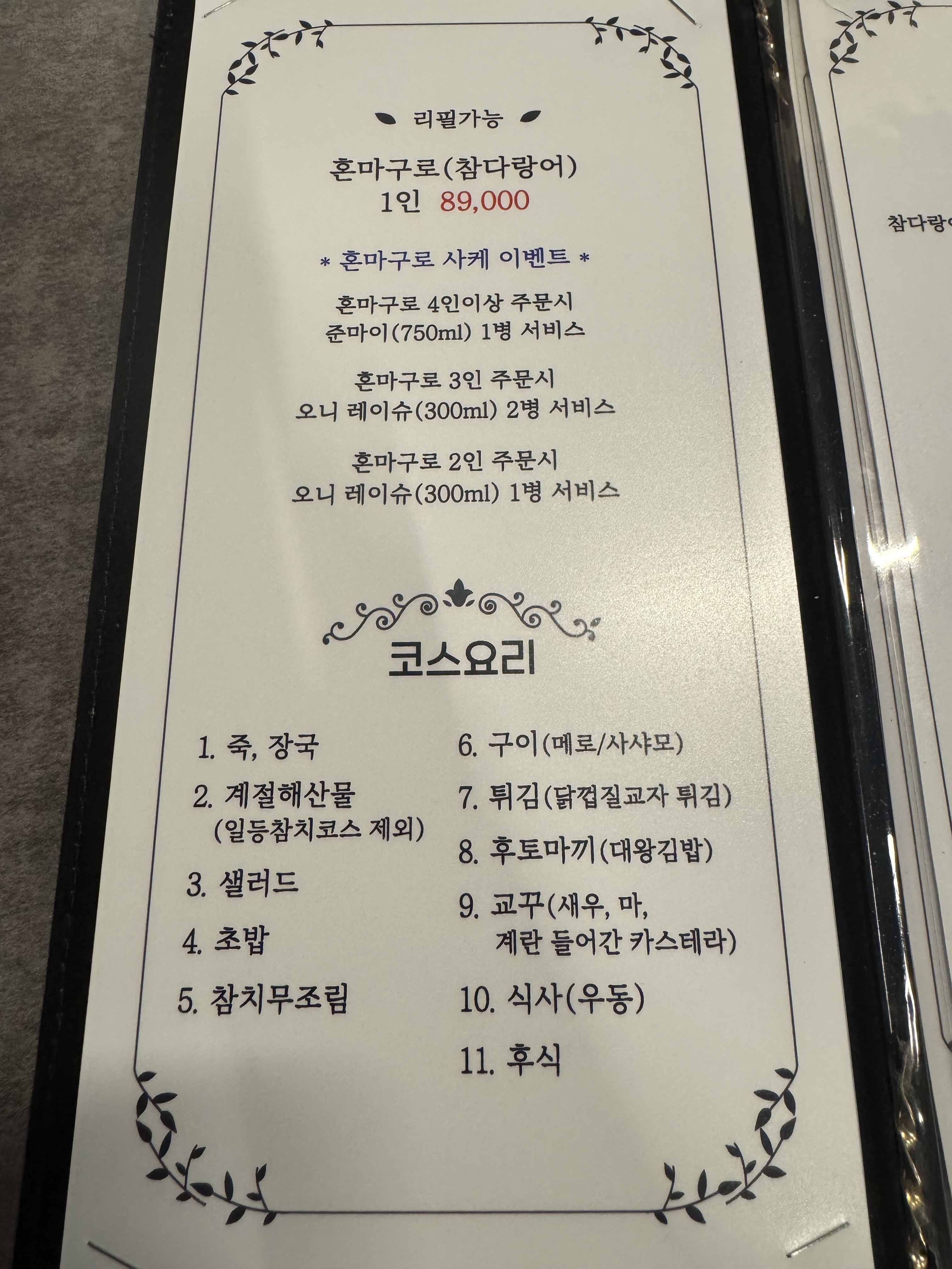 꼬모사랑해두번째 방문인데 리모델링 하셨나봐요!홀도 넓어지고 참치 양도많고 맛있어서 재방문했는데 제눈를 사로잡은 한상메뉴 참치 광어 연어의 조합 2차코스로 술을 좋아하는 저에게 딱인 메뉴가 생견내요 다음에는 간단하게 저녁먹고 2차로 한상메뉴 먹으러 와야지! ㅋ