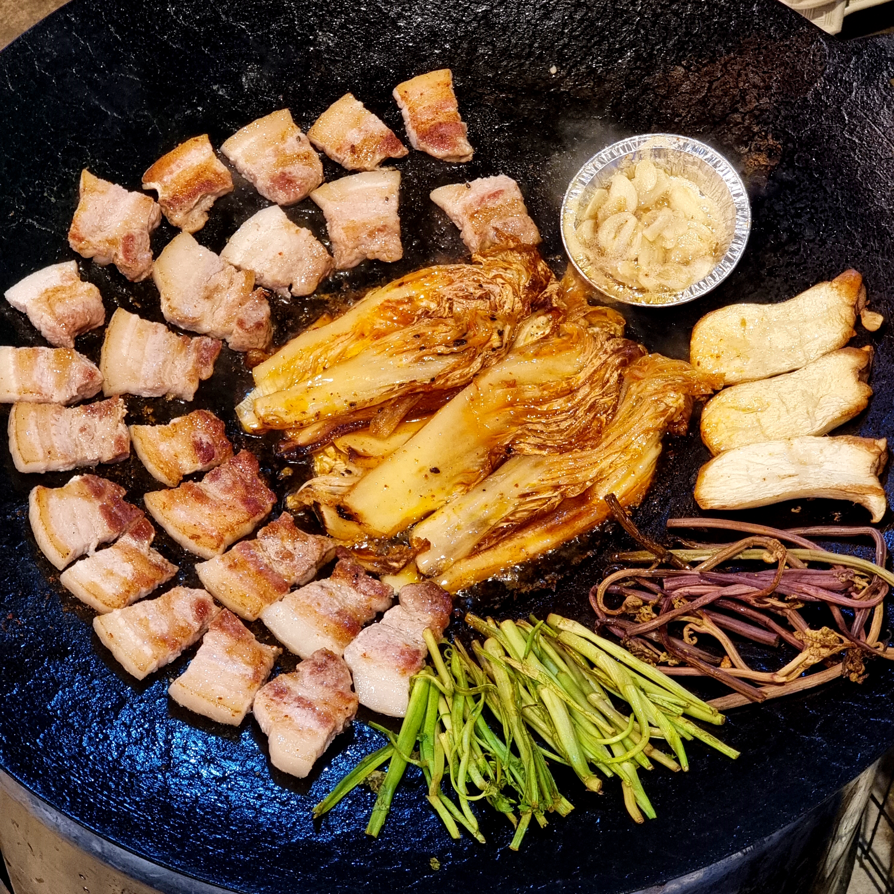 - 직접구워주는 솥뚜껑 묵은지삼겹살 한판 55,000원