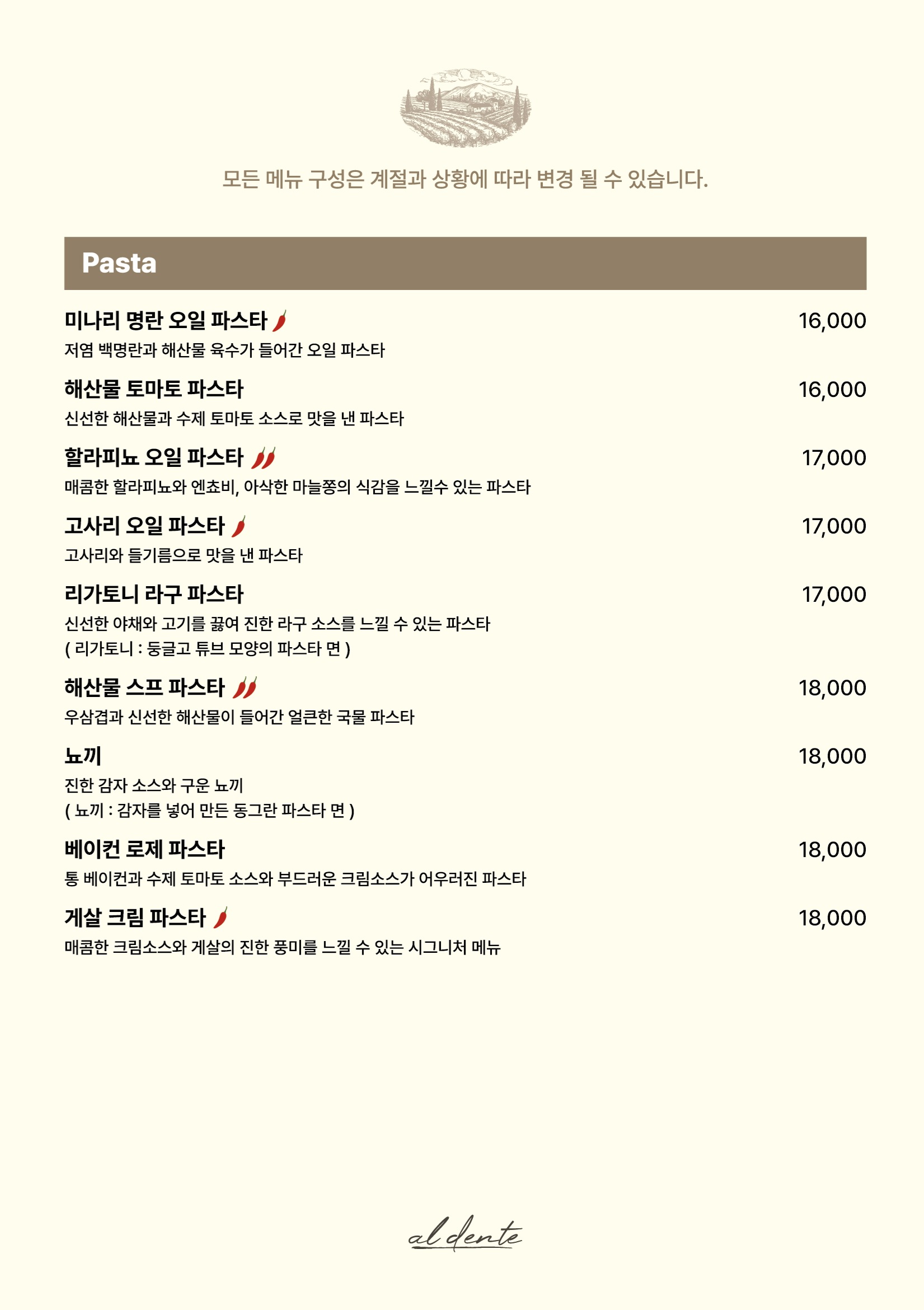 - 할라피뇨 오일 파스타 17,000원