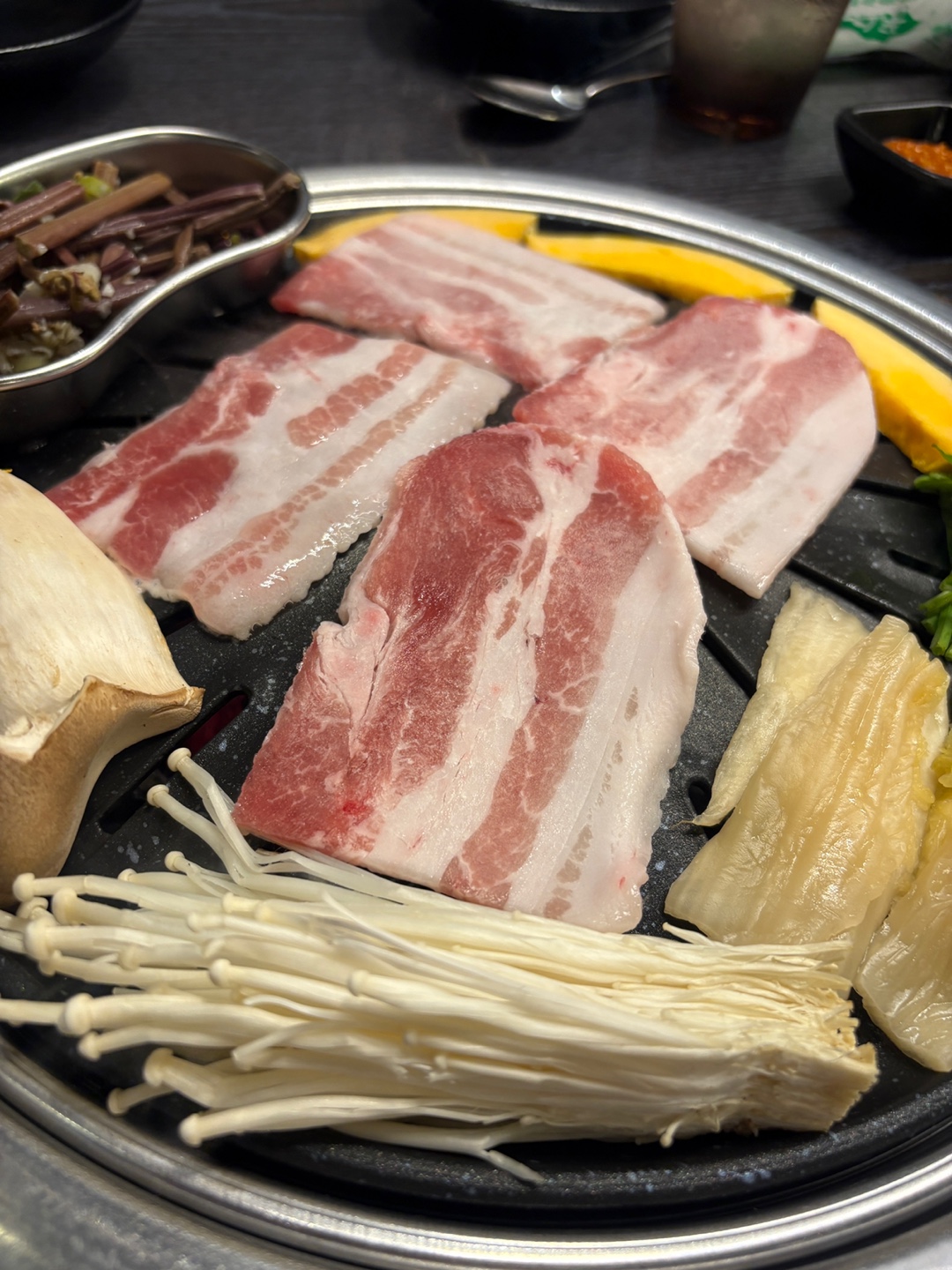 고기냠냠믱사장님이랑 직원분들 너무 친절하시고 목살도 취향 저격입니다,, 매장도 청결하고 밑반찬이 다양해서 좋더라구용! 와사비도 주시는데 다른 곳보다 맛있는 느낌 ..? 껍데기도 맛있고 고기 먹으러 상대동 종종 갈 것 가타요,, 그리고 코리아 디저트 볶음밥도 필수로 드셔야해요 김치제육 jmt 였숩니다!👍🏻
