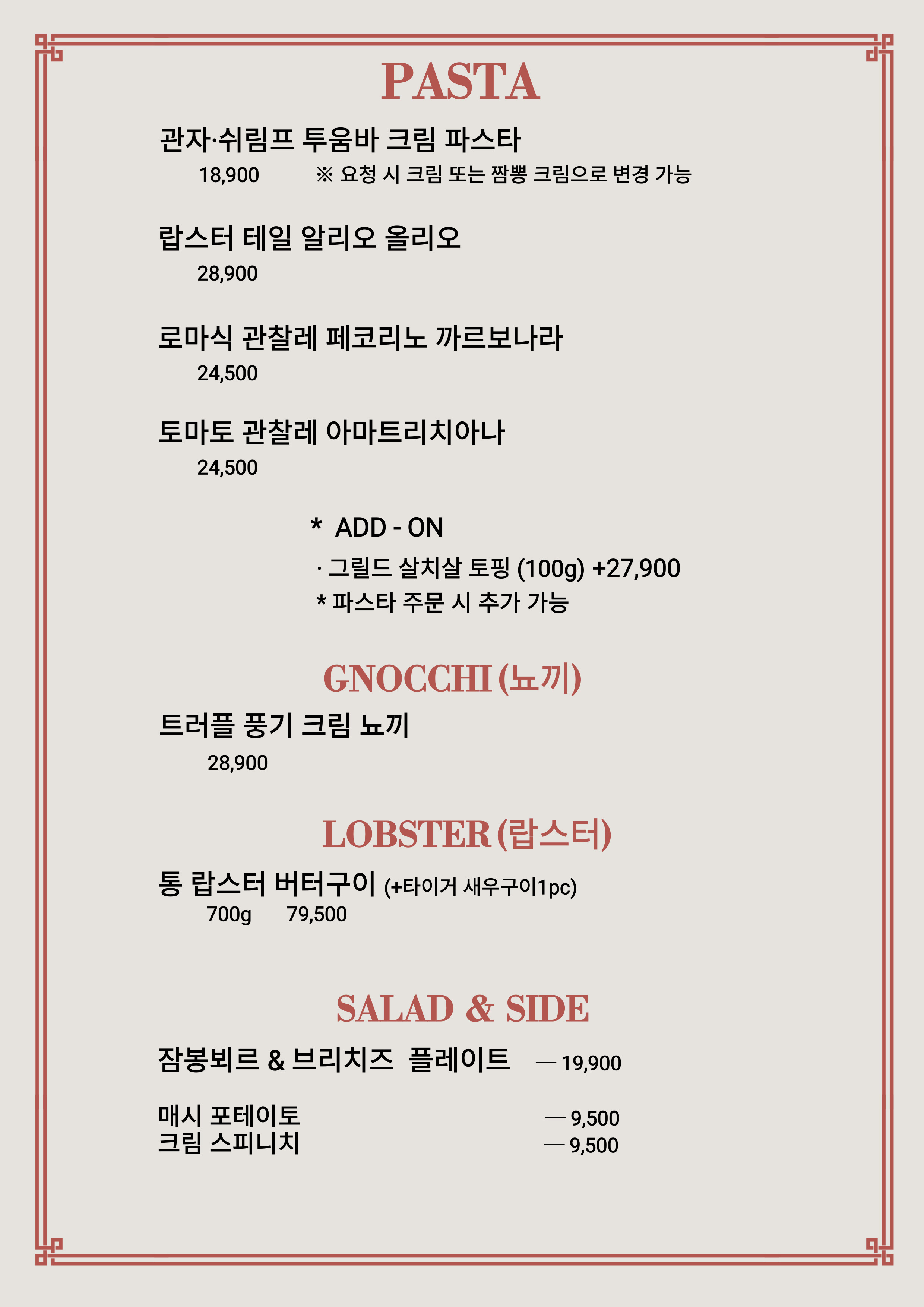 - 랍스터 봉골레 올리오파스타 28,900원
