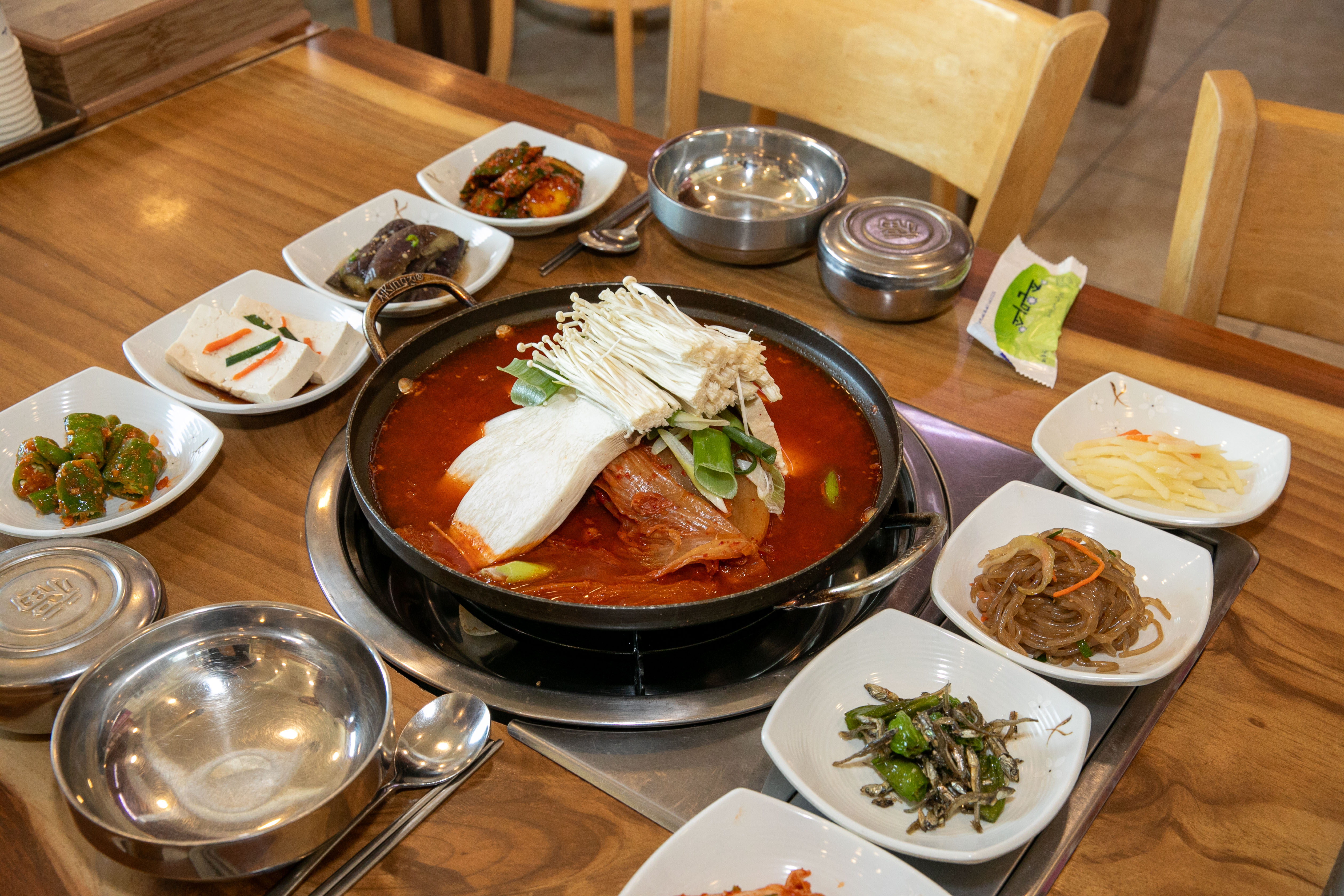 - 묵은지갈비전골 中 (3인) 45,000원
