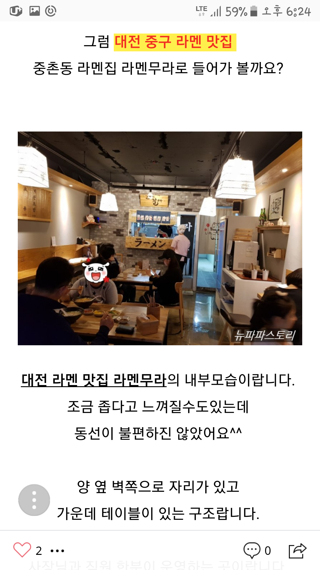 blankk대전 라멘 맛집 라멘무라 다녀왔어요 카라이돈코츠 매운맛으로 먹었는데 1~3단계 선택할 수도 있고 매운맛 매니아인 저는 2단계도 딱 깔끔하고 좋더라구요 하루 30인분 한정판매인 계란초밥도 별미였어요 와사비맛, 마요맛이 있는데 와사비맛이 특히 제 마음에 쏙 들었답니다 앞으로 단골될 것 같네요!