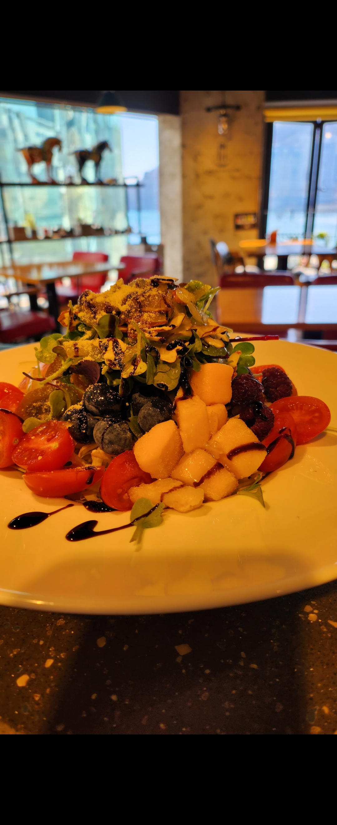 직관맨#안심스테이크 & 과일야채샐러드 다 맛있네요사장님 커피도 서비스로 주시고 음식 먹는중 커피 식어 차갑다도 커피를 다시 주시는 사장님 너무 친절해요 송도해수욕장 뷰가 너무 멋지네요