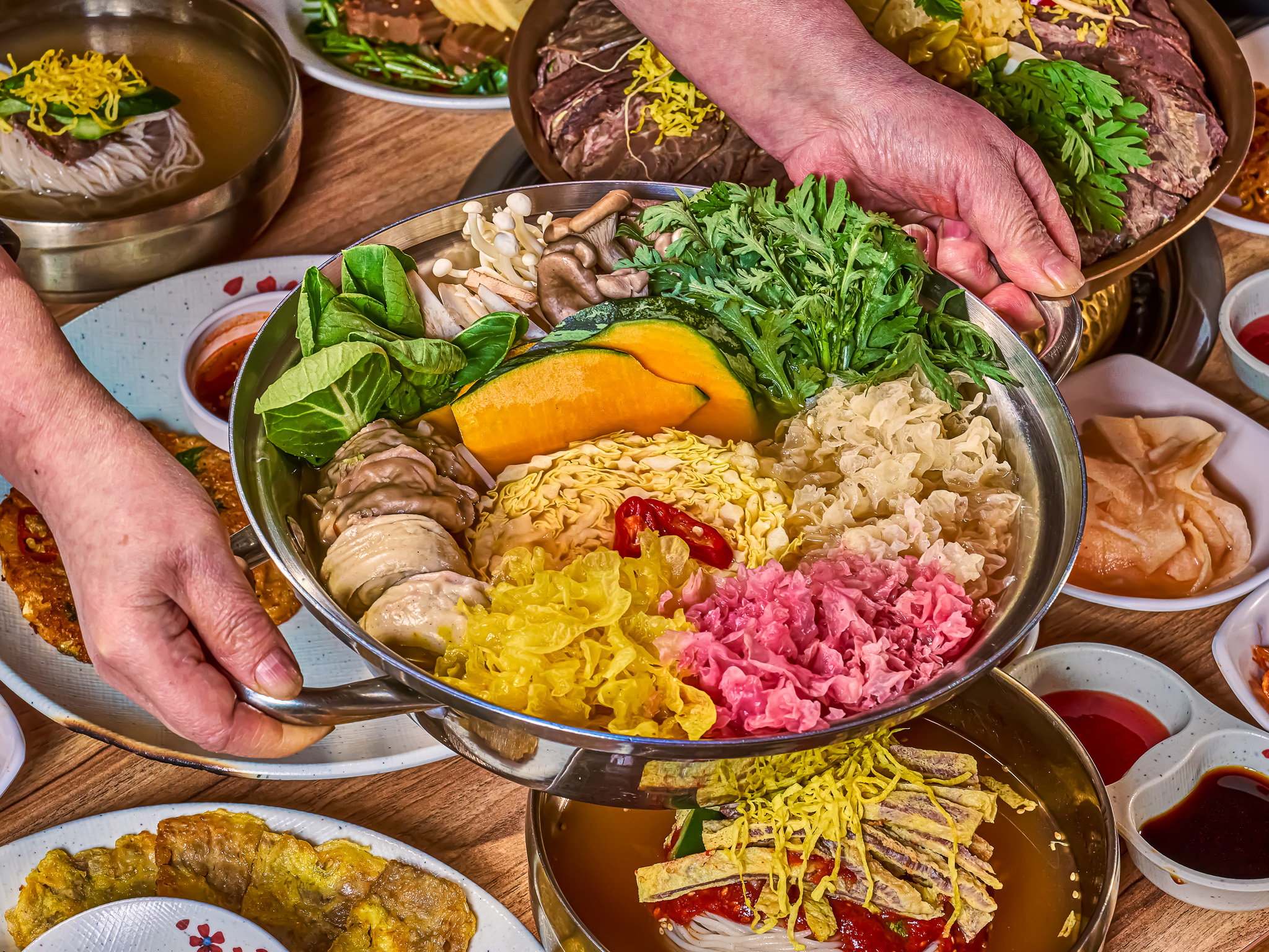 - 평양식 황금만두꽃전골 궁중코스 13,000원