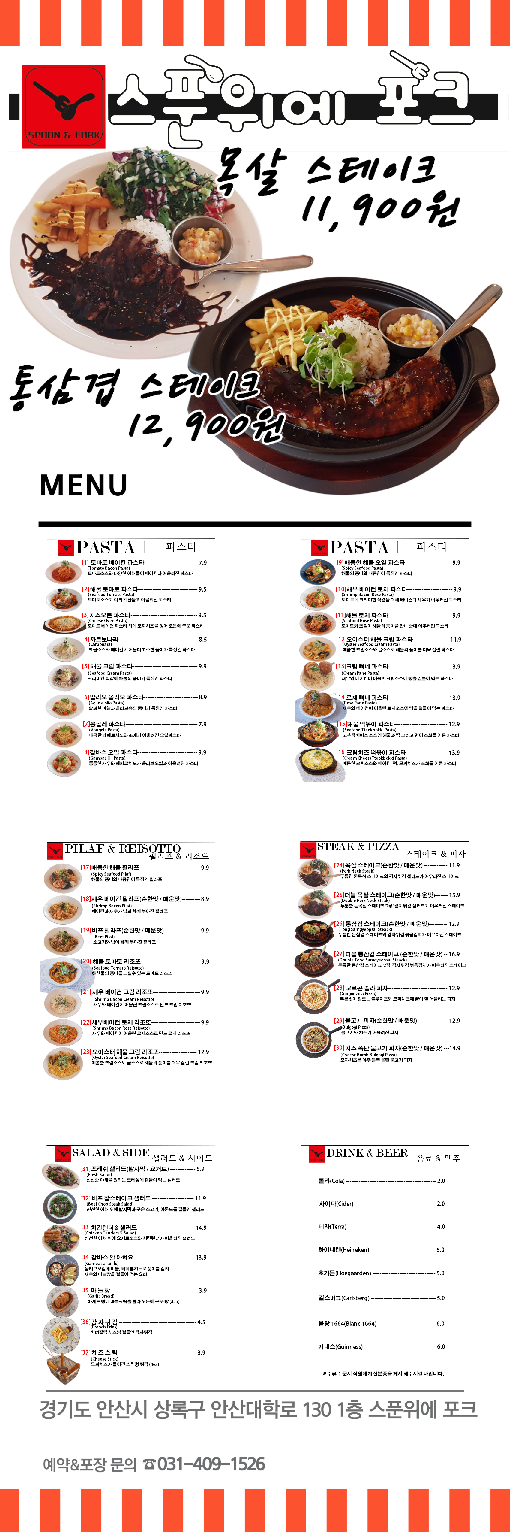 - 더블 포크 스테이크(순한맛/매운맛) 17,900원