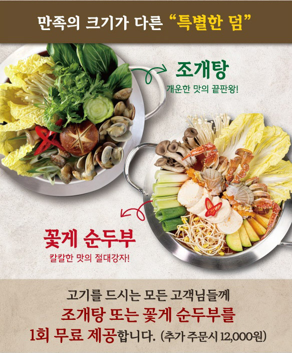 • 조개탕 또는 꽃게순두부 1회 서비스 0원