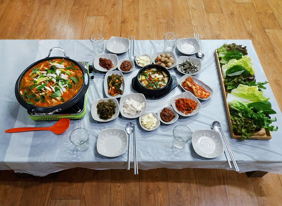 앨리스15인원이 많아서 쌈밥4인 생선구이4인 이렇게 주문했더니 센스있게 나눠 주셔서 메뉴구성이 알차졌어요 생선구이 짜지 않아서 맛있게 먹었고 찌개도 짜지 않고 시원했어요 쌈채소도 여러가지 신선해서 좋았고 주물럭은 살짝 아쉬운 맛이었지만 만족하면서 잘 먹었어요 가게 앞에는 주차공간이 3대 정도만 가능하니 참고하세요