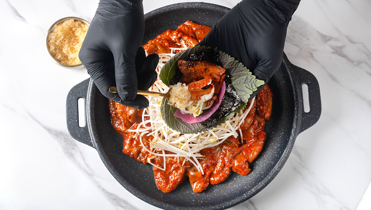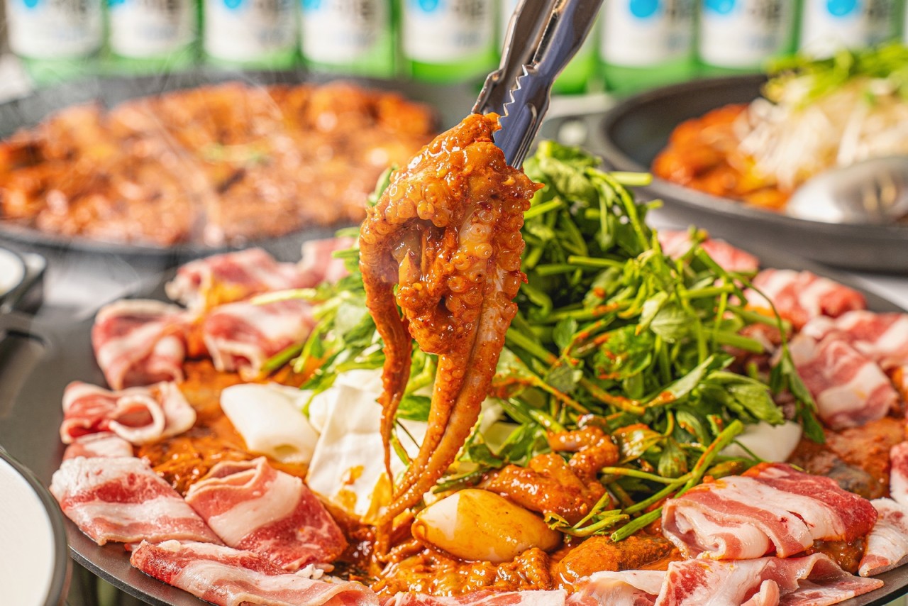 - 철판쭈꾸미+고기듬뿍(흑돼지 꽃삼겹) 17,900원