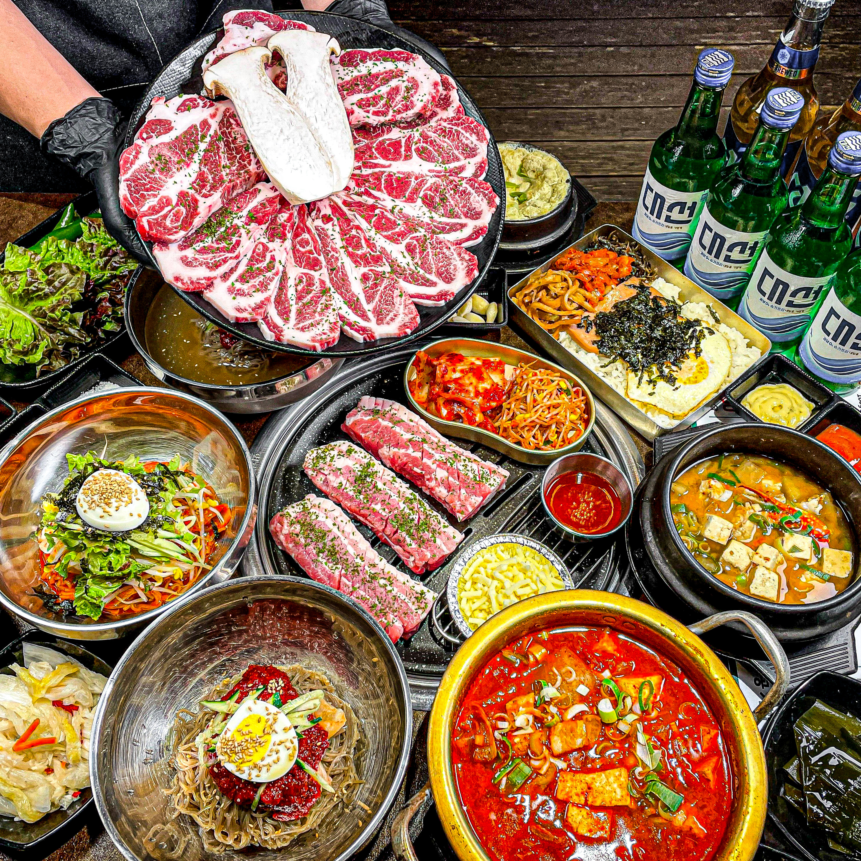 까망별88기본 500g 주문이고 상차림비 3000원이 있어요. 100g단위로 다양한 고기를 주문할 수 있는데 처음 주문한건 생삽겹살과 모서리살이었어요. 삼겹살은 비계와 살코기의 비율이 좋고 두툼해서 고기를 먹는 맛이 있지만 굽는데 시간이 오래 걸려요. 개인적으로 모서리살이 제 최애 부위였는데 꼬들꼬들한 식감과 담백한 맛이 매력적이더라구요. 익히기도 편리해요. 돼지 부태살과 토시살도 먹었는데 조각으로 나눠져있어서 굽기가 편리해요. 밑반찬을 자체 리필해서 먹을 수 있는데다 물김치, 명이나물도 맛있어서 다양하게 쌈싸먹기 좋았어요. 개인적으로 계란찜은 촉촉한걸 좋아하는데 퍼석한 편이라 제 취향이 아니었어요. 굉장히 바쁜데도 직원분들이 다들 친절하세요.