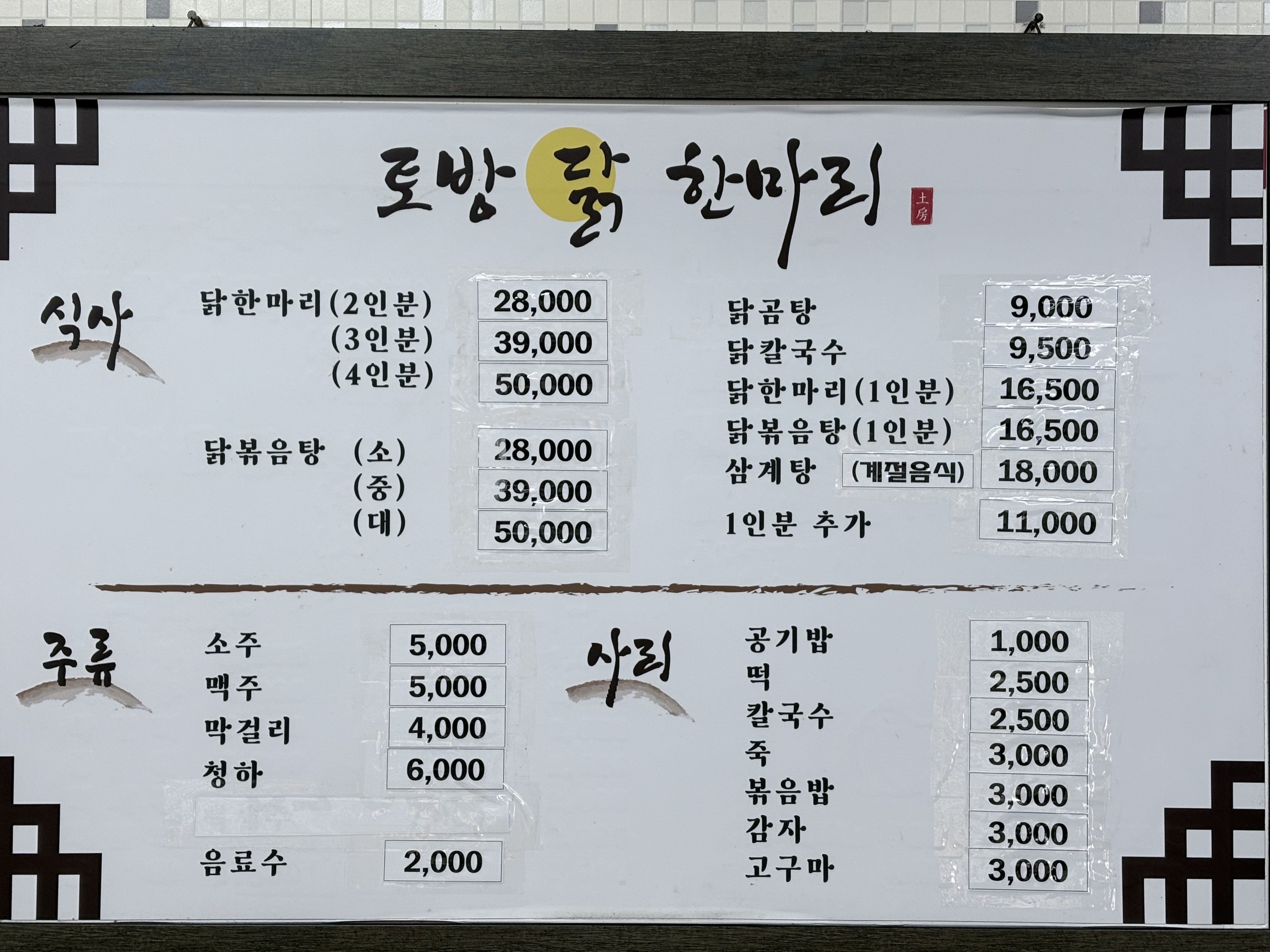 • 닭한마리 2인분 28,000원