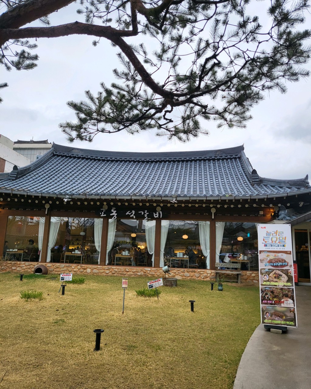 EG01ST 꼬맹이한옥마을에 위치한 전통 한식맛집 교동석갈비 이곳의 시그니처 메뉴인 석갈비와 매운 석갈비 그리고 육회비빔밥 주문 했구요 간장 양념이 잘 베인 석갈비와 매운 석갈비 모두 맛있었고 간이 세지않아 육회비빔밥 과도 잘 어울렸어요 큰 통창 너머 햇살 따사롭게 스며든 넓은 실내공간은 한옥의 정취를 느끼며 식사하기에 부족함없이 좋았구요 직원분들 친절하시고 찬들 리필도 잘해주시고 만족스러운 식사 였습니다.